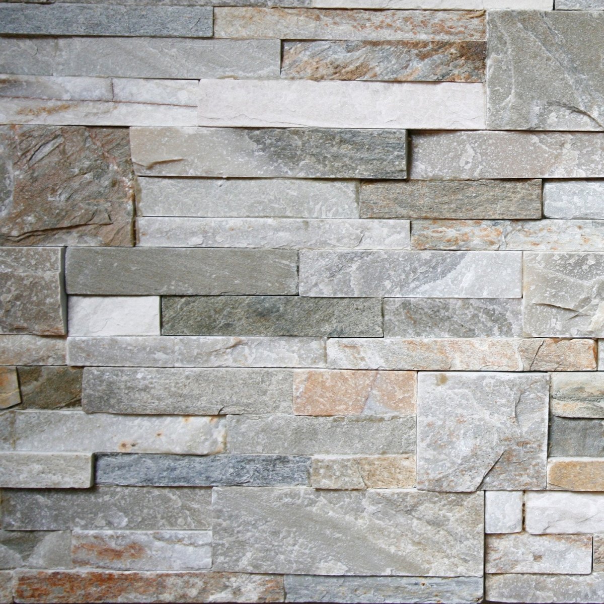Natursteinverblender Quarzit mit Block, hochwertiger Echtstein, überwiegend längliche Streifen plus einzelne quadratische Blöcke